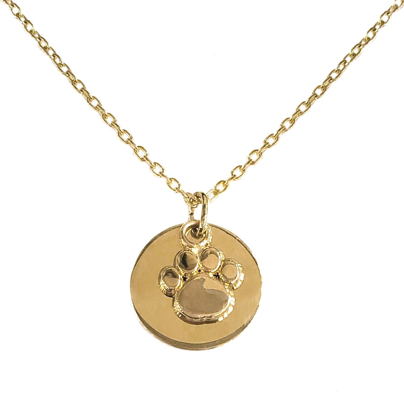 14K YELLOW GOLD FURRY FRIEND DISC NECKLACE -ENGRAVED