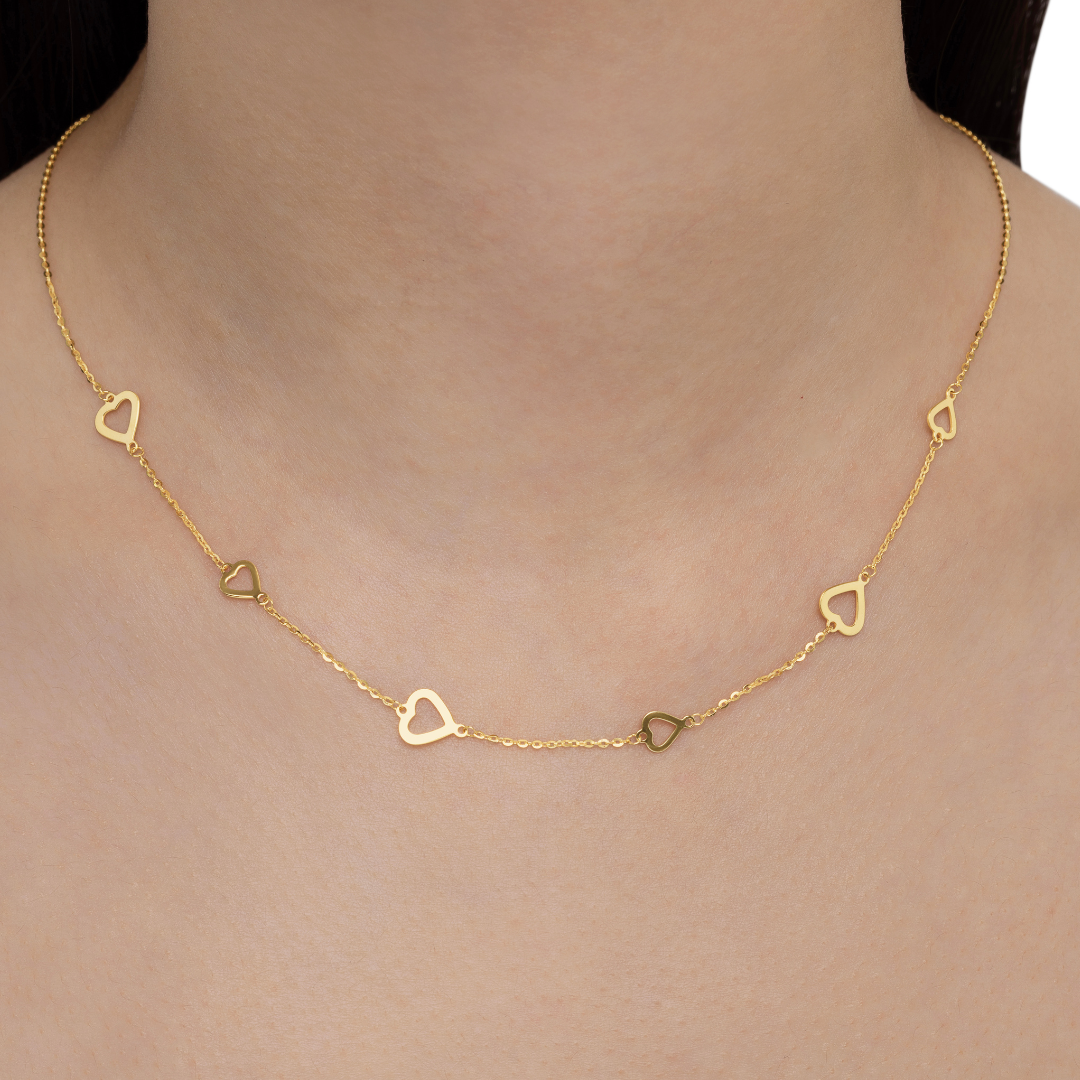 - 14K YELLOW GOLD HEARTS BY THE YARD NECKLACE