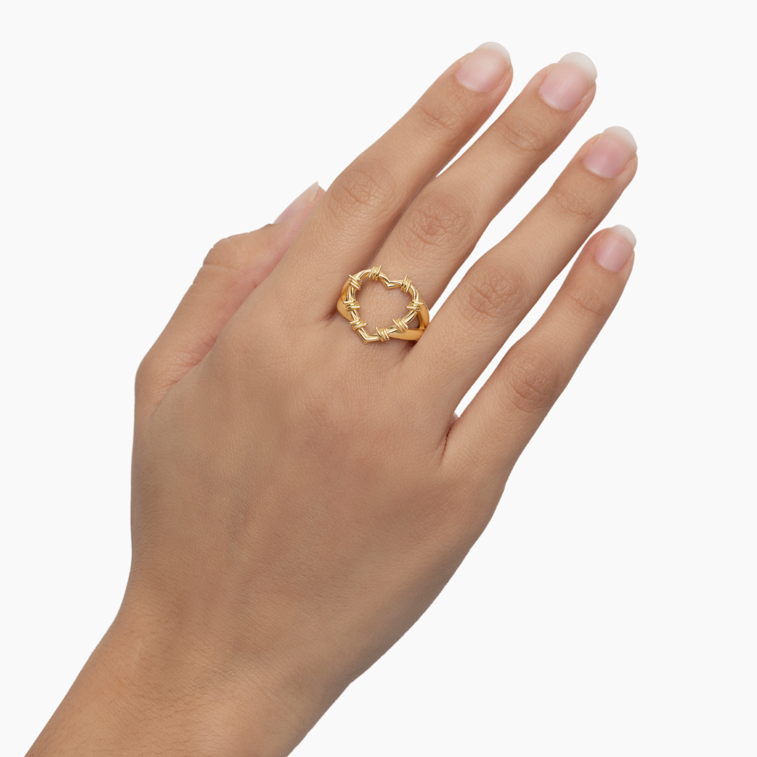 10K YELLOW GOLD BARBED WIRE HEART RING