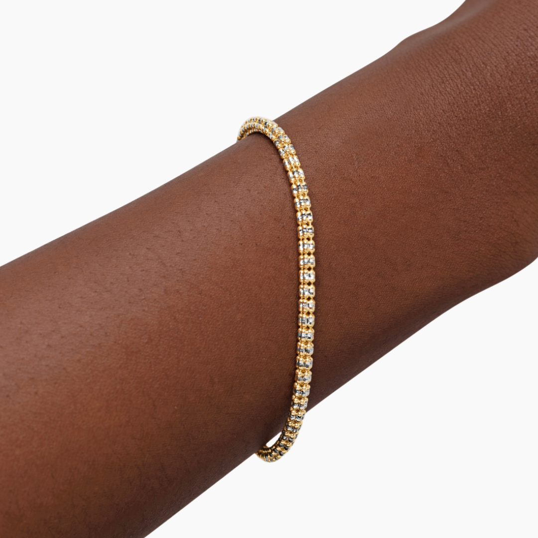 10K TWO TONED GOLD ICE BRACELET -2.5MM