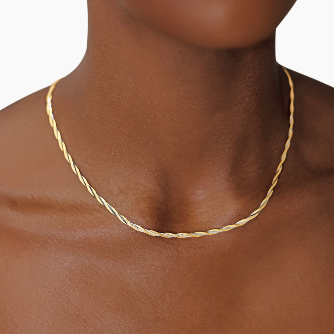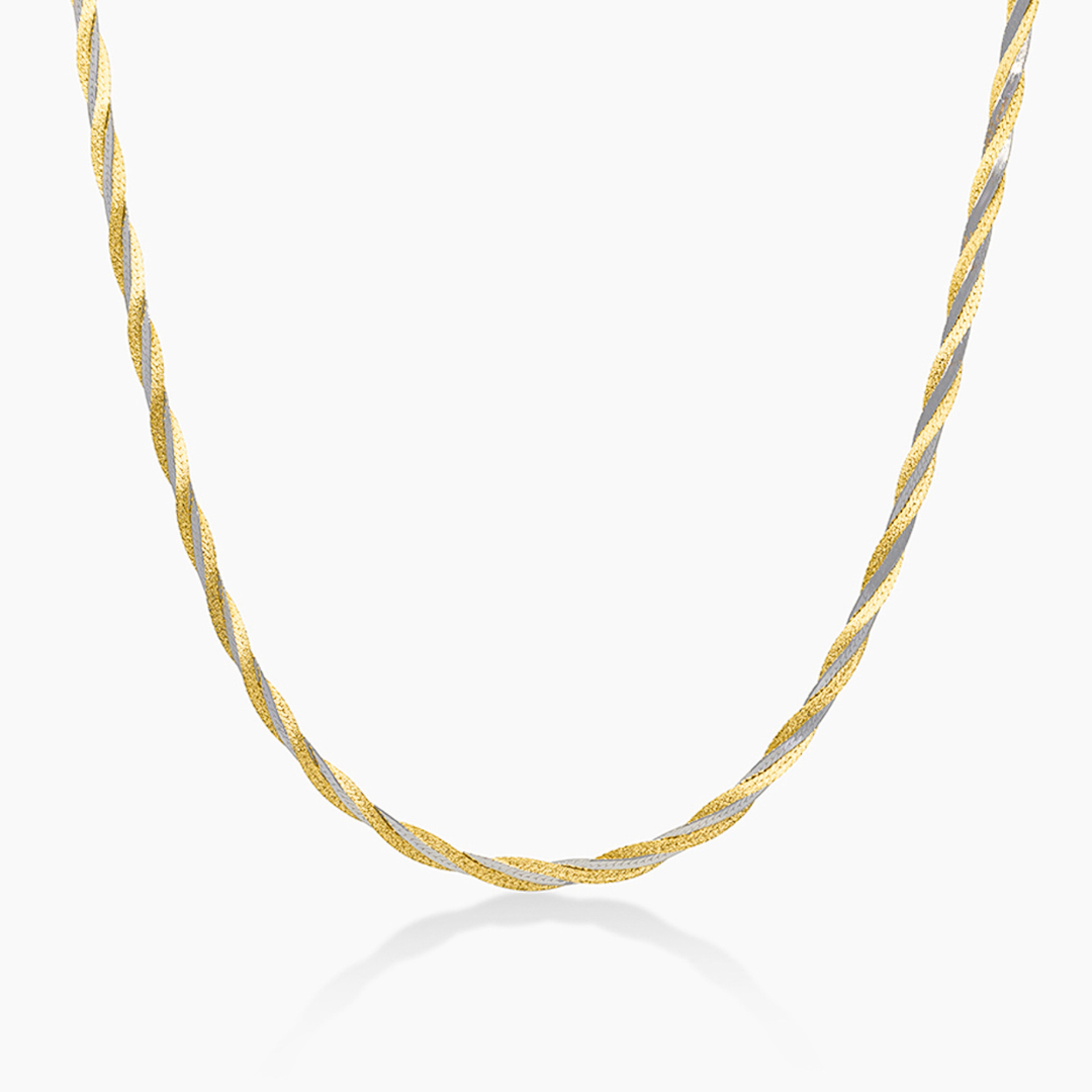 14K TWO TONED GOLD HERRINGBONE TWIST NECKLACE