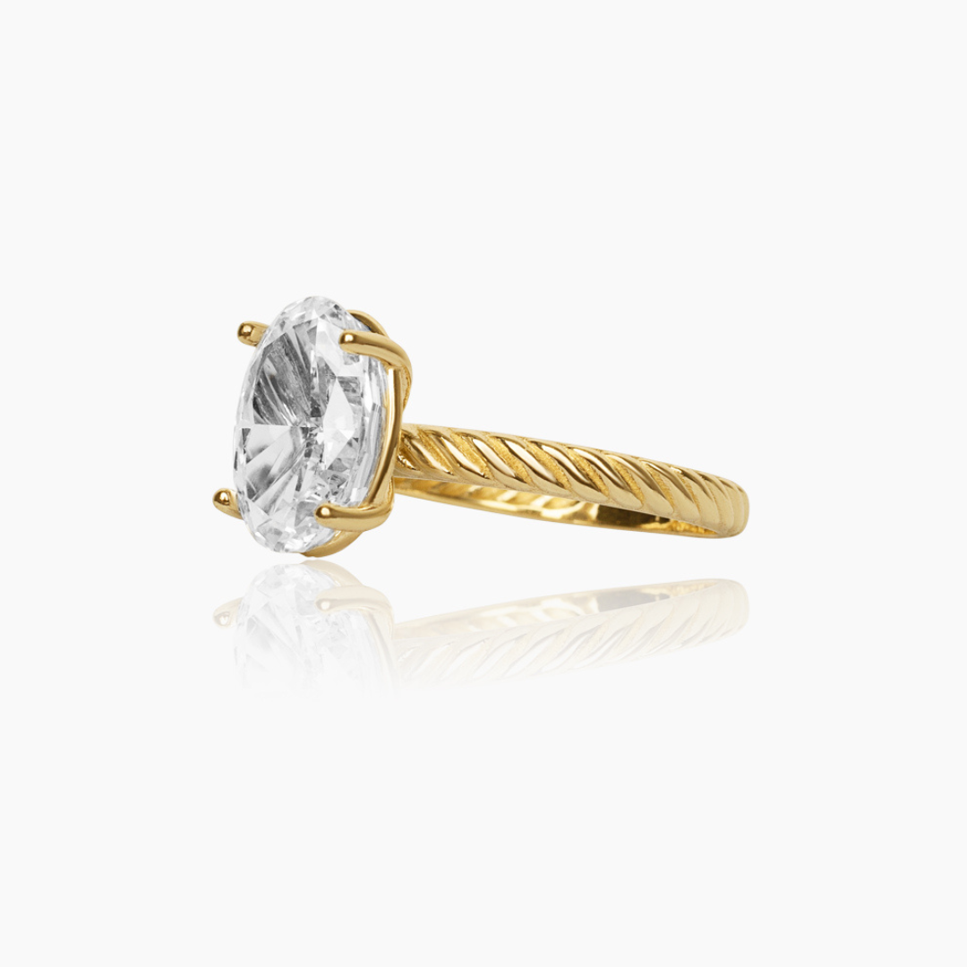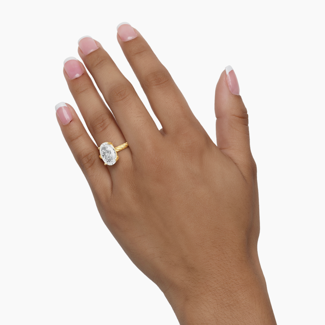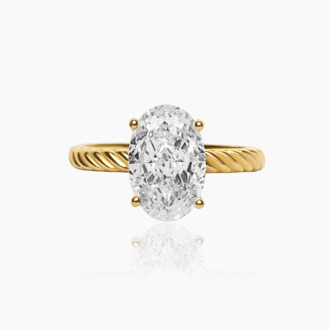 14K YELLOW GOLD ELOISE OVAL ROPE SOLITAIRE ENGAGEMENT RING -CZ