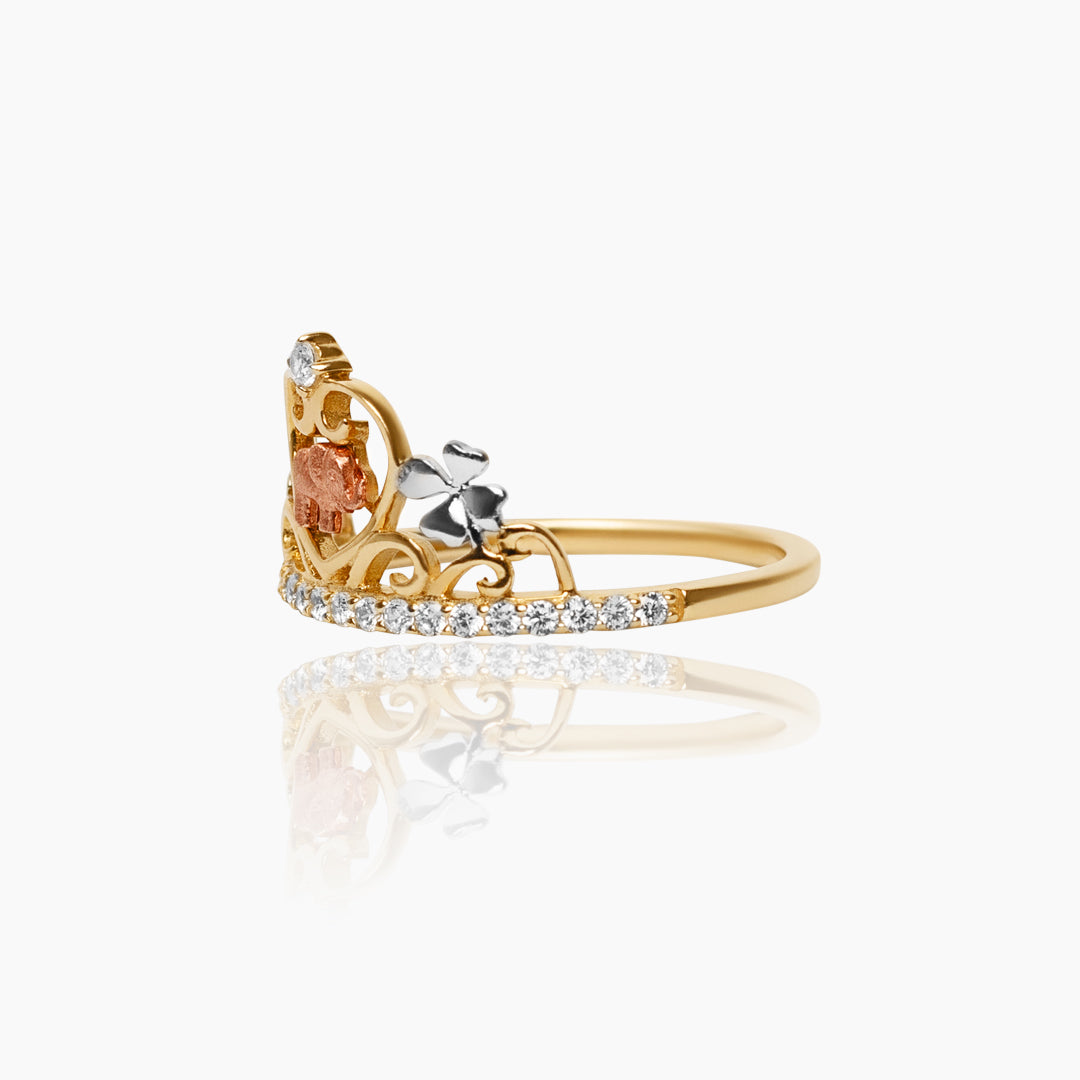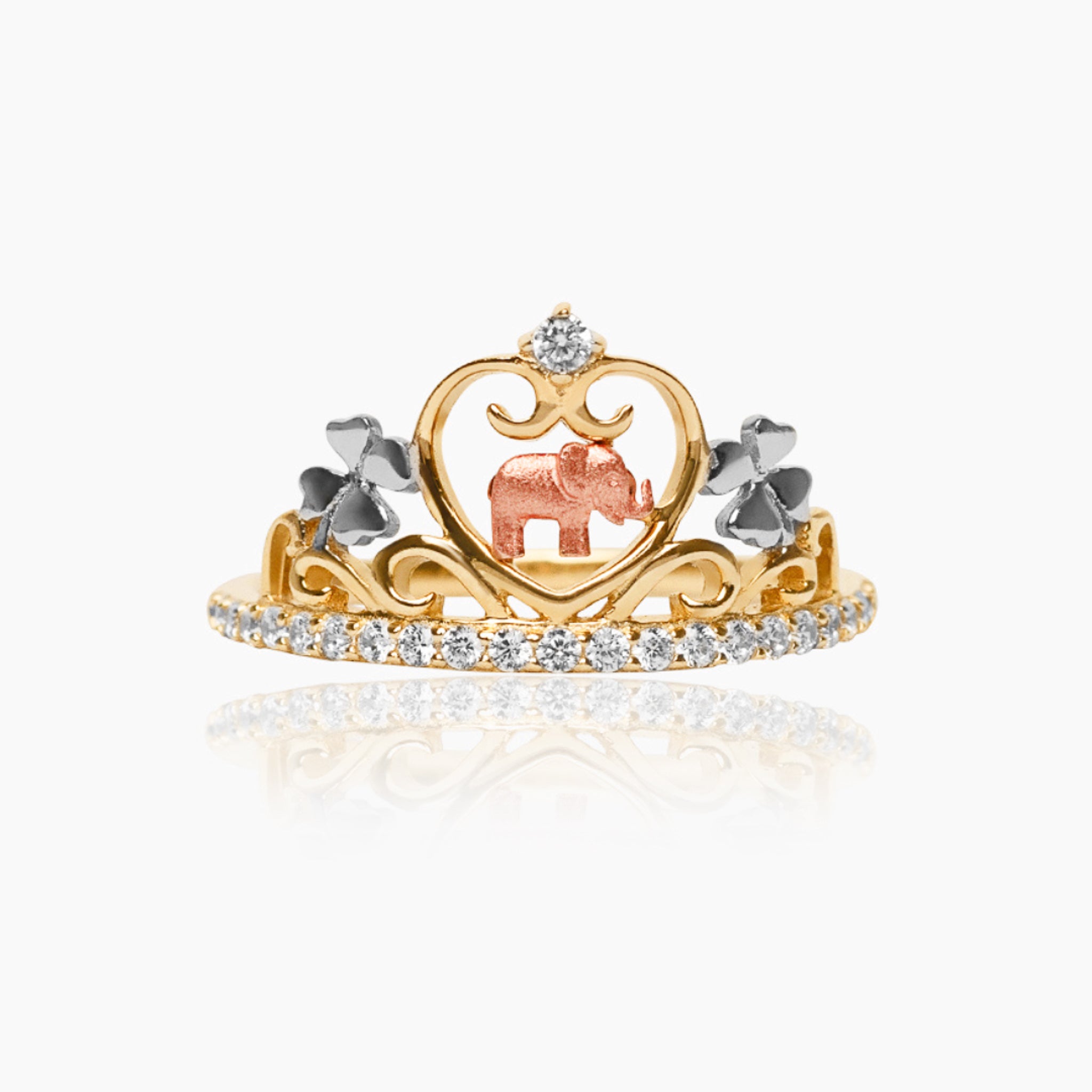 14K TRI COLOR GOLD LUCKY GIRL ELEPHANT CROWN RING