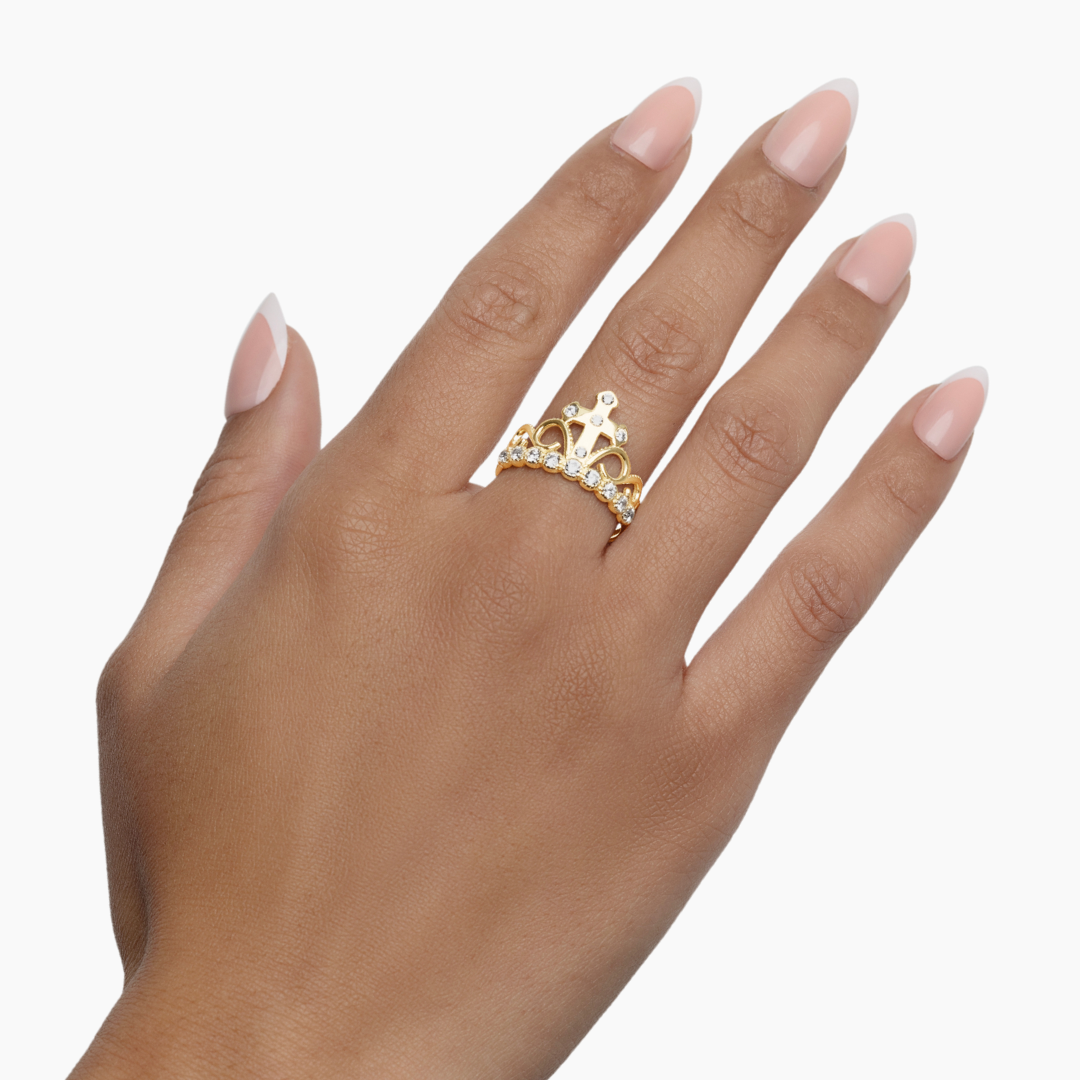 14K YELLOW GOLD MARISOL CROSS CROWN RING