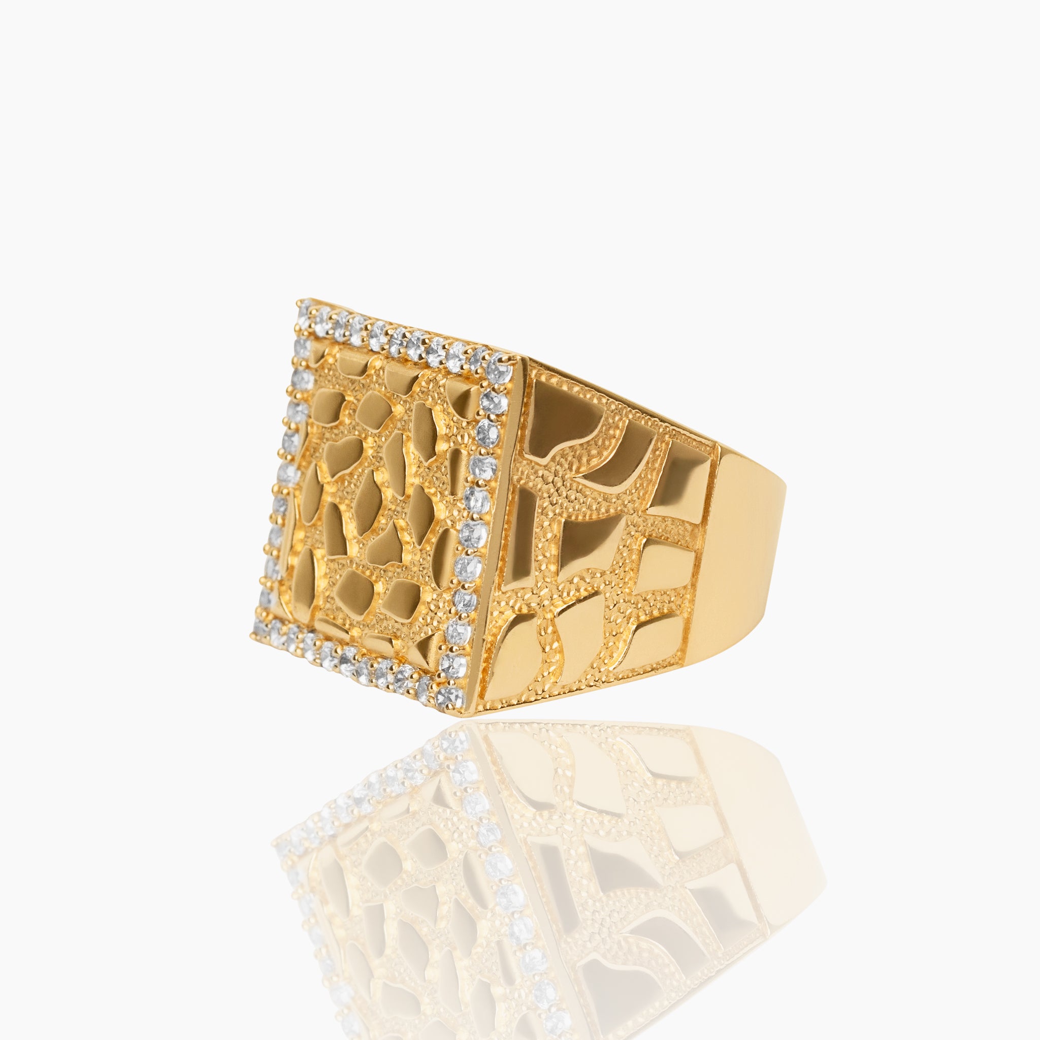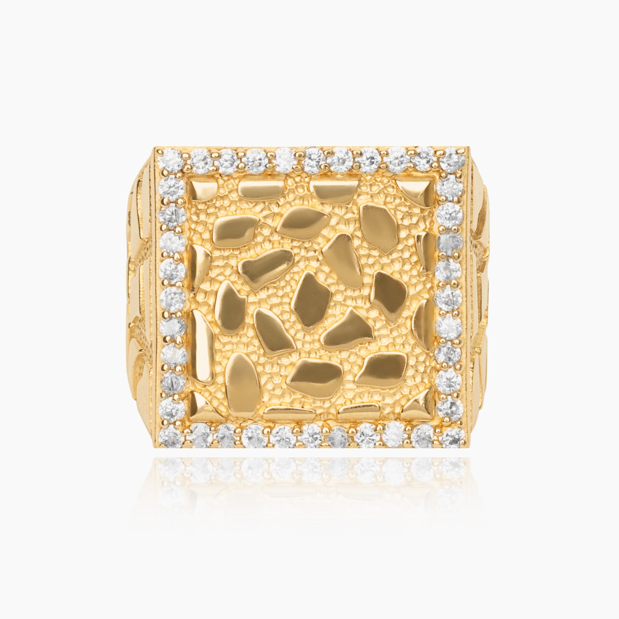 14K YELLOW GOLD ICY CUBE NUGGET RING -19MM