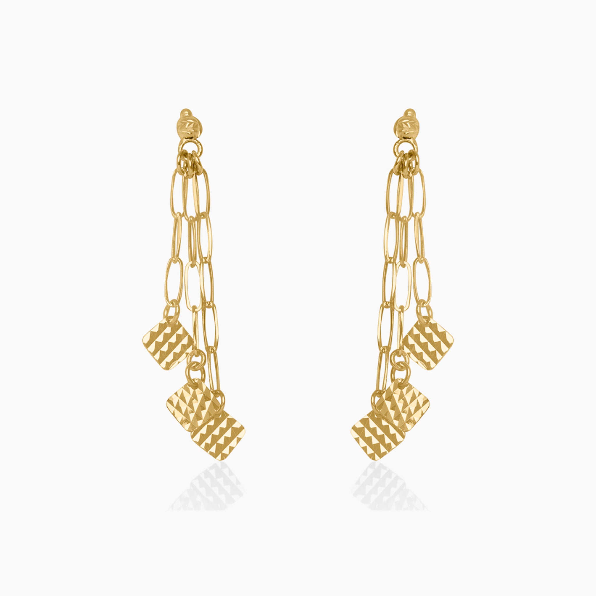 14K YELLOW GOLD PAPERCLIP GLIMMERING DROP EARRINGS