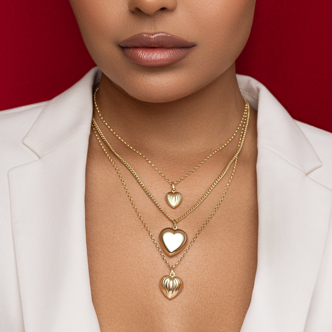 14K YELLOW GOLD PLEATED BIGGER HEART NECKLACE