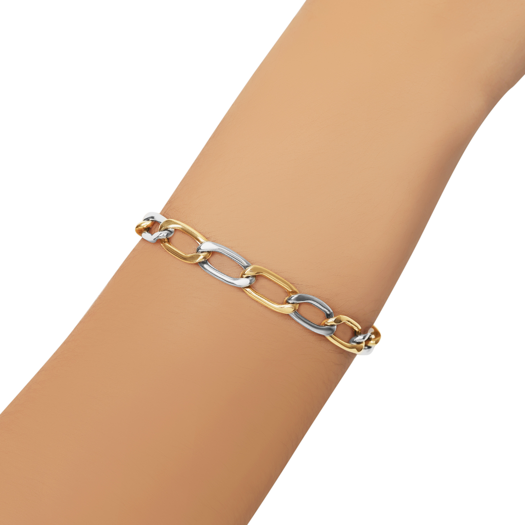 14K TWO TONED GOLD WIDE LINKS BRACELET