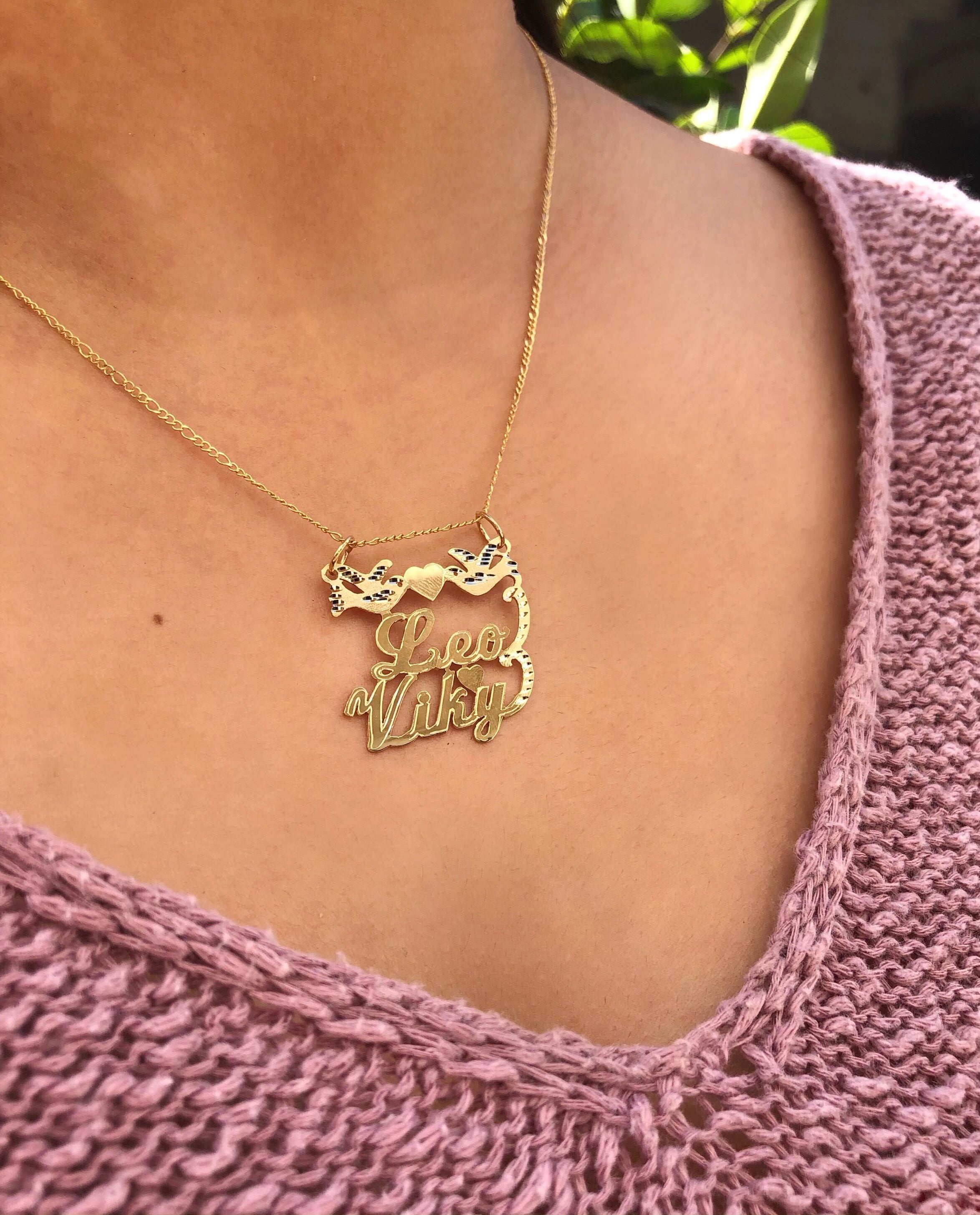 14K YELLOW GOLD SCRIPT LOVE BIRDS NAME PENDANT