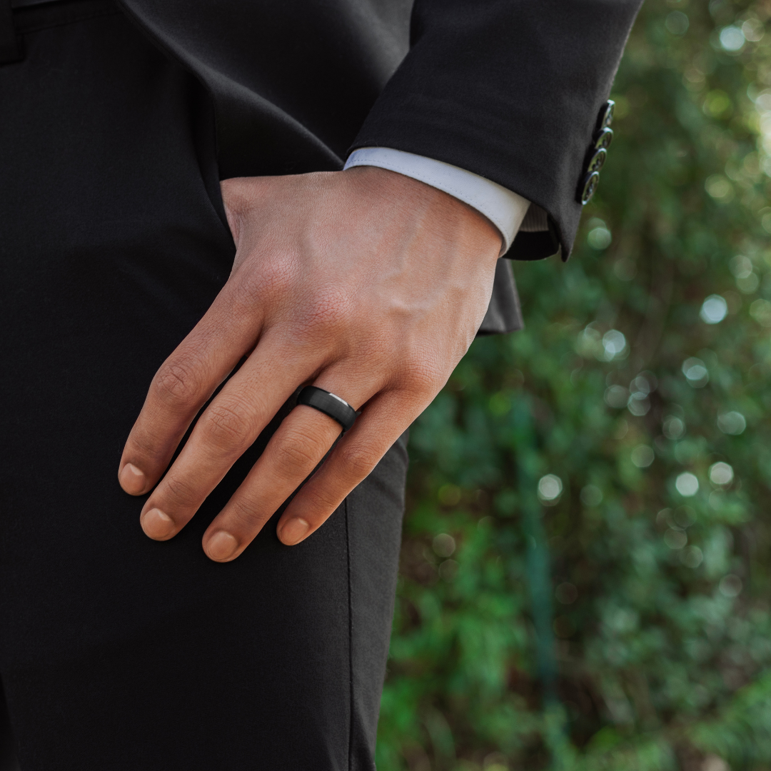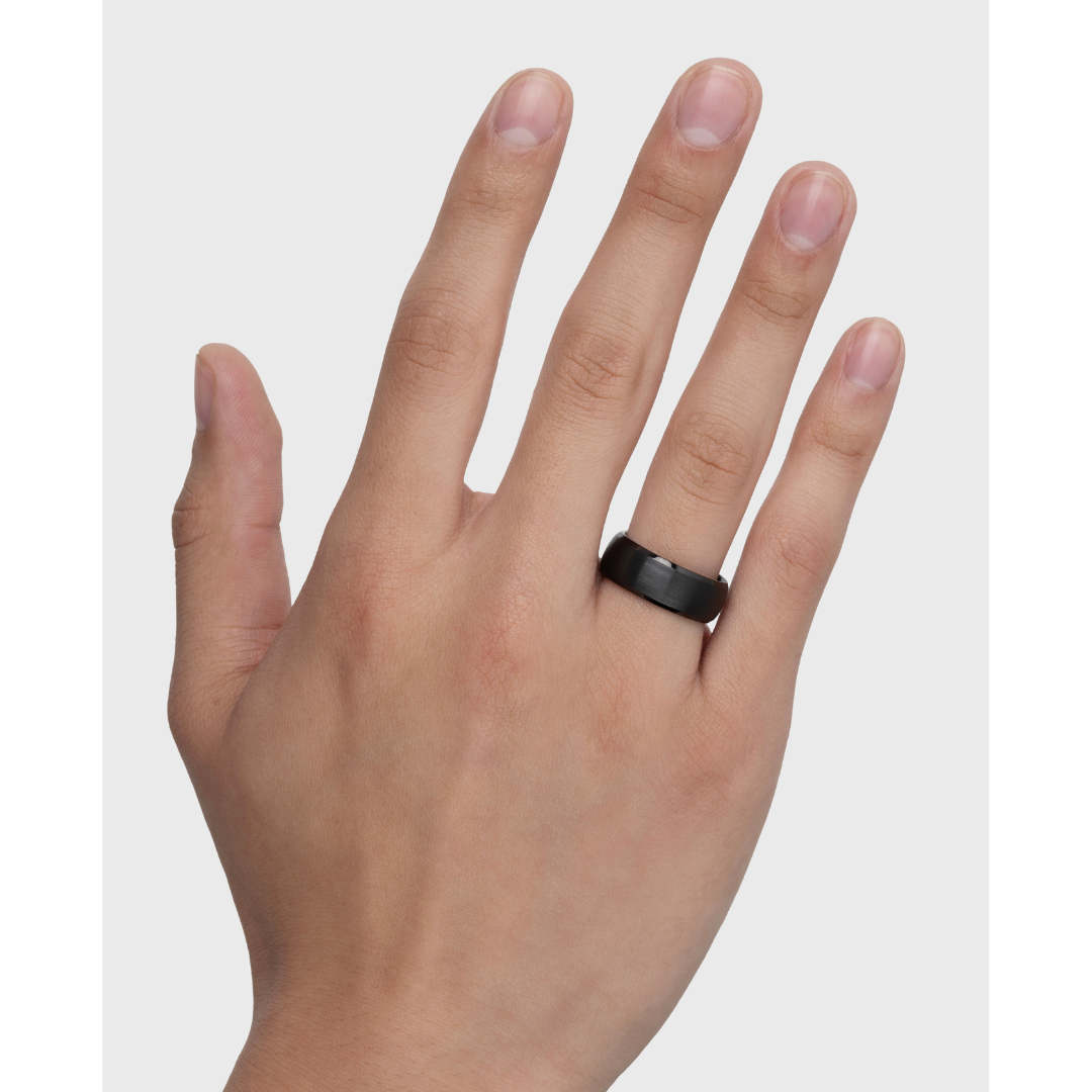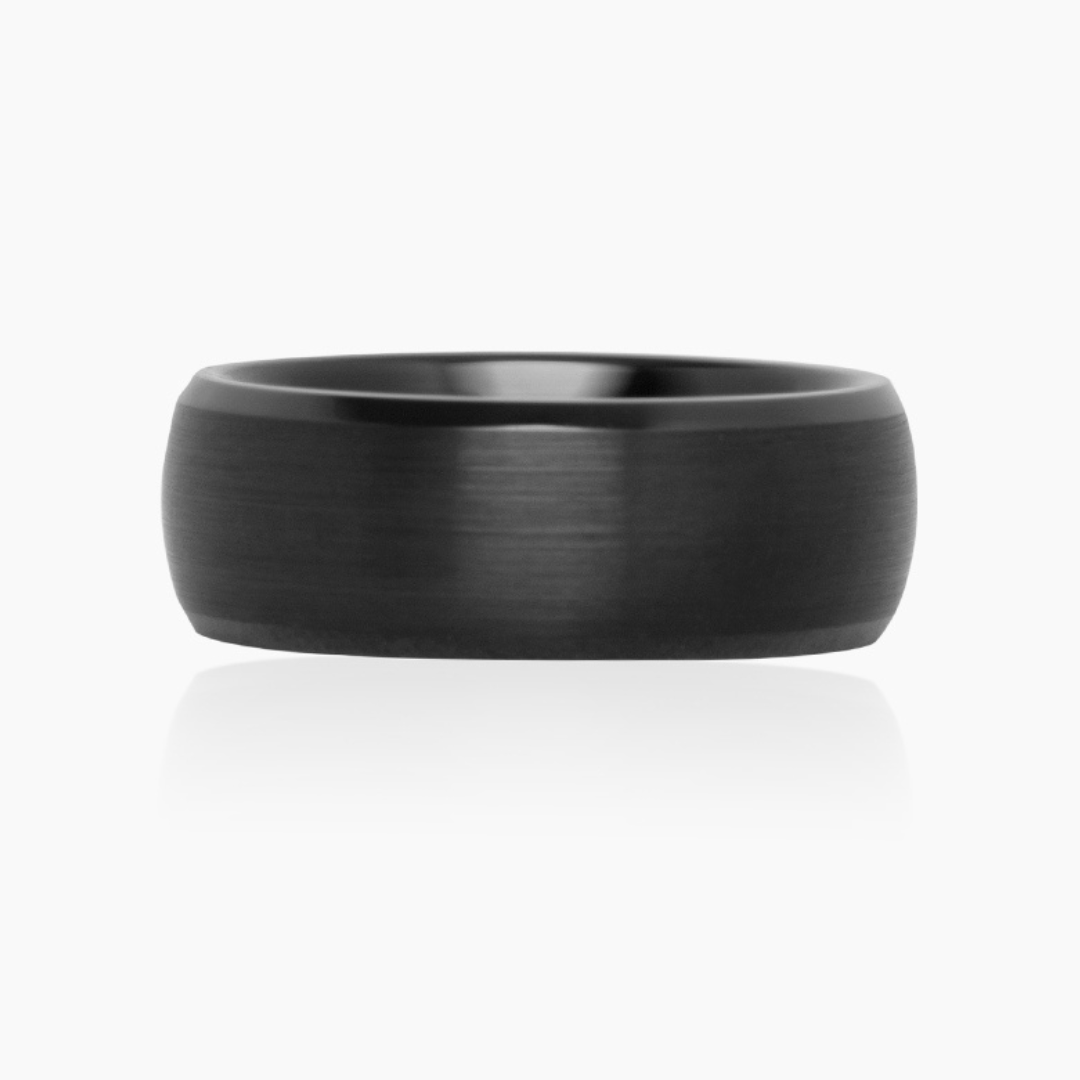 TUNGSTEN BLACK BRUSHED DOMED BEVEL EDGE RING -8MM