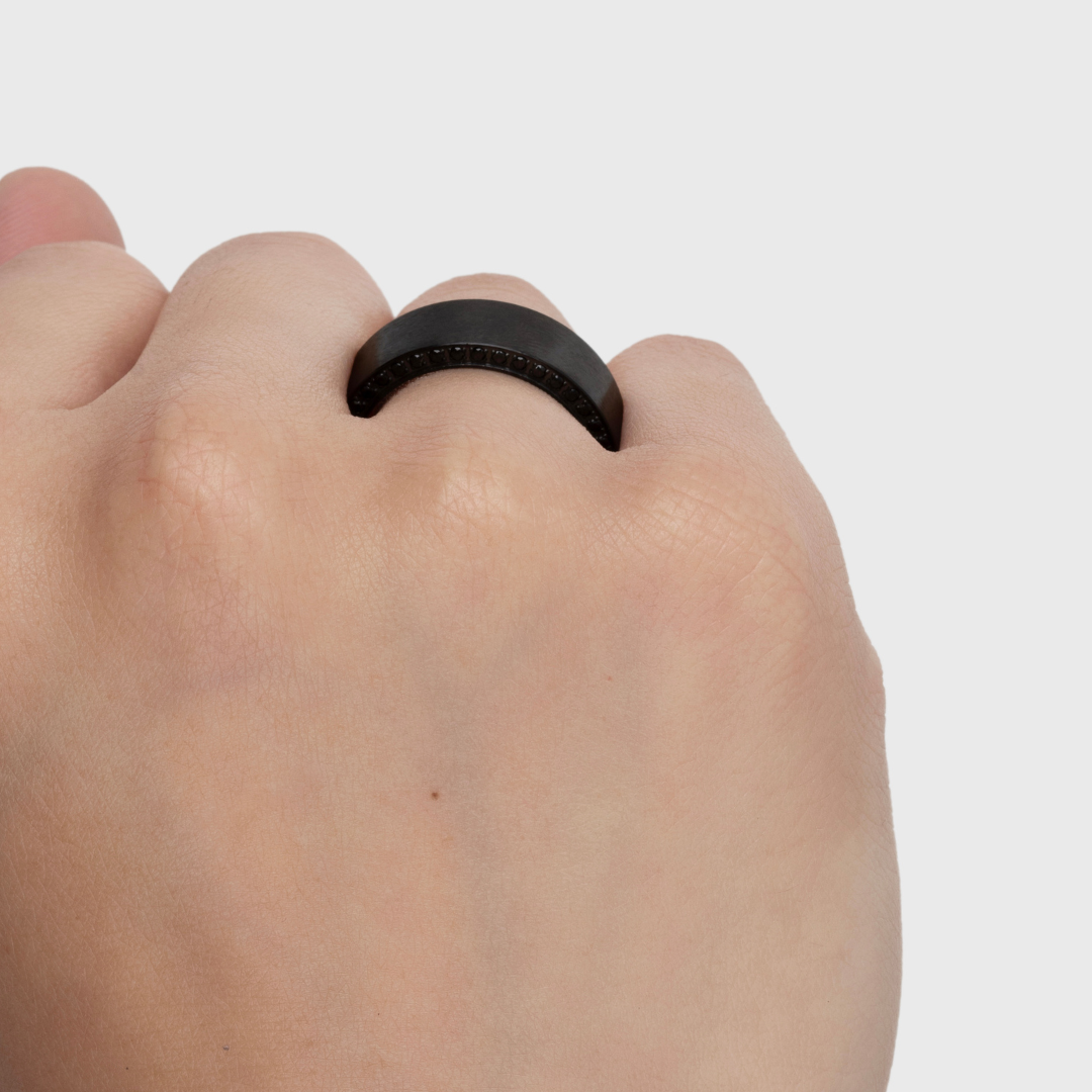 TUNGSTEN BLACK BRUSHED ETERNITY STONE EDGE RING -8MM