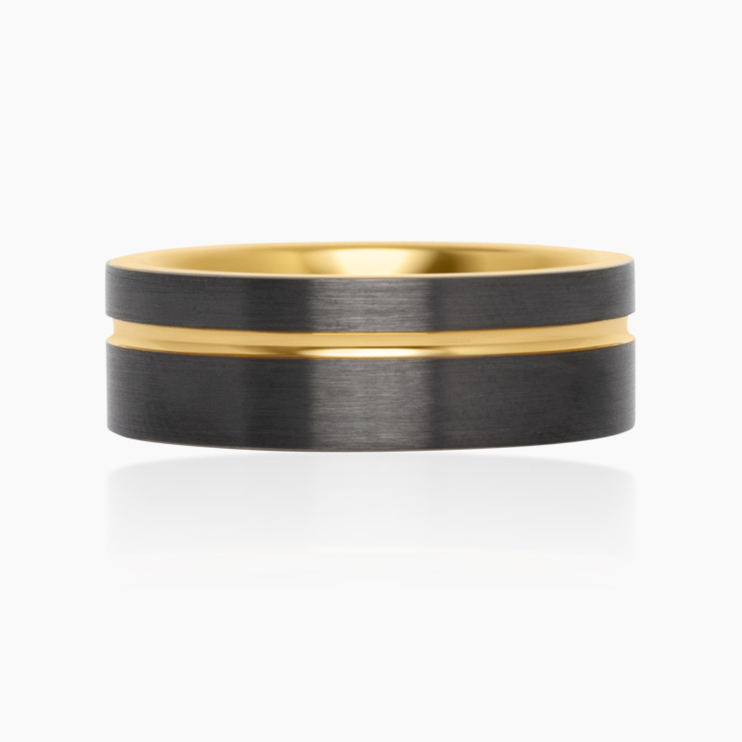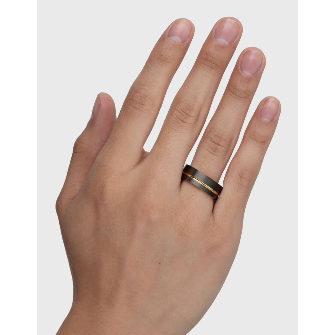 TUNGSTEN BLACK BRUSHED GOLD LINE INTERIOR RING -8MM
