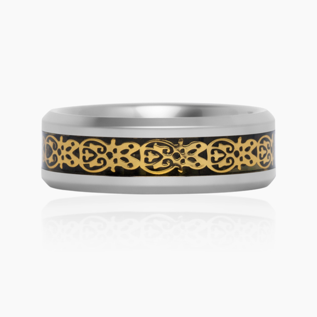 TUNGSTEN OPULENT HIGH POLISH TWO TONED BLACK INLAY RING -8MM